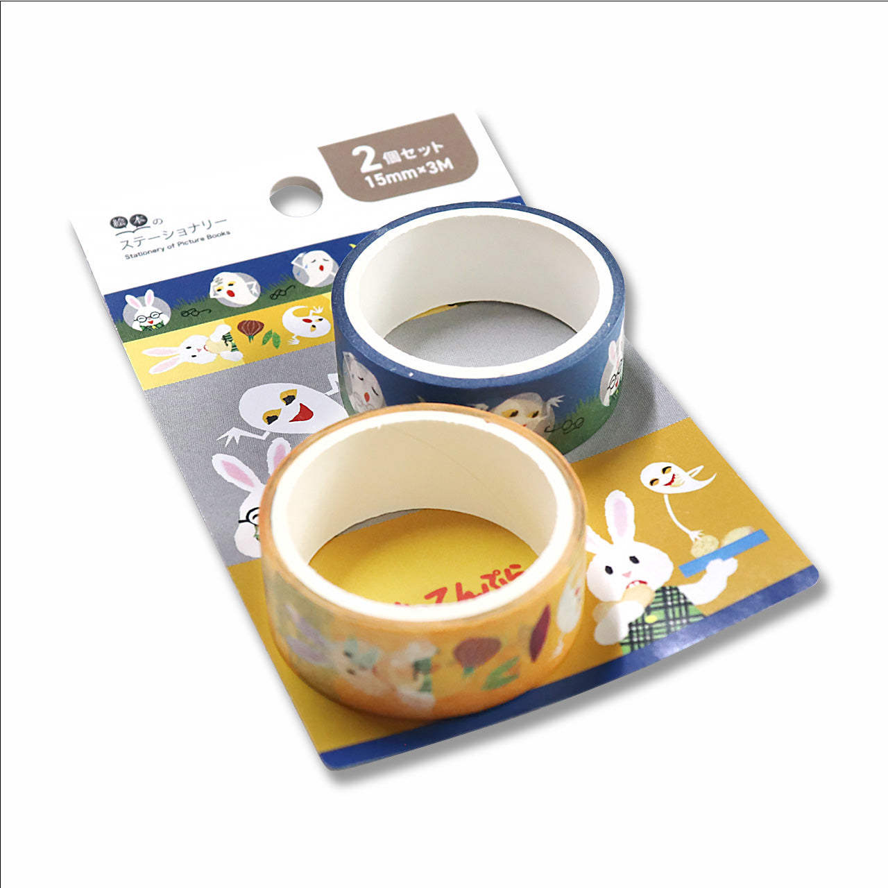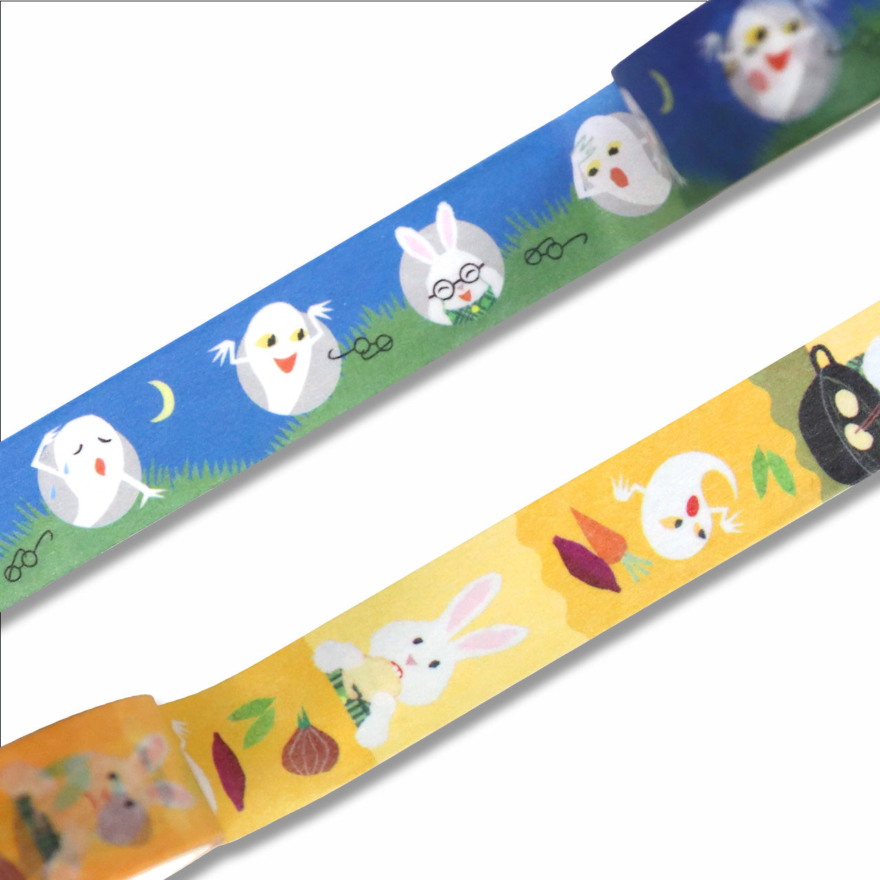 【絵本のステーショナリー】マステ2P 紺x黄土【おばけのてんぷら&めがねうさぎ】