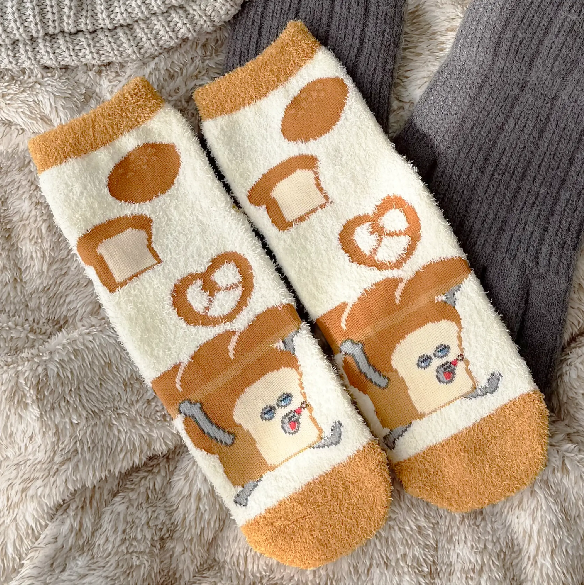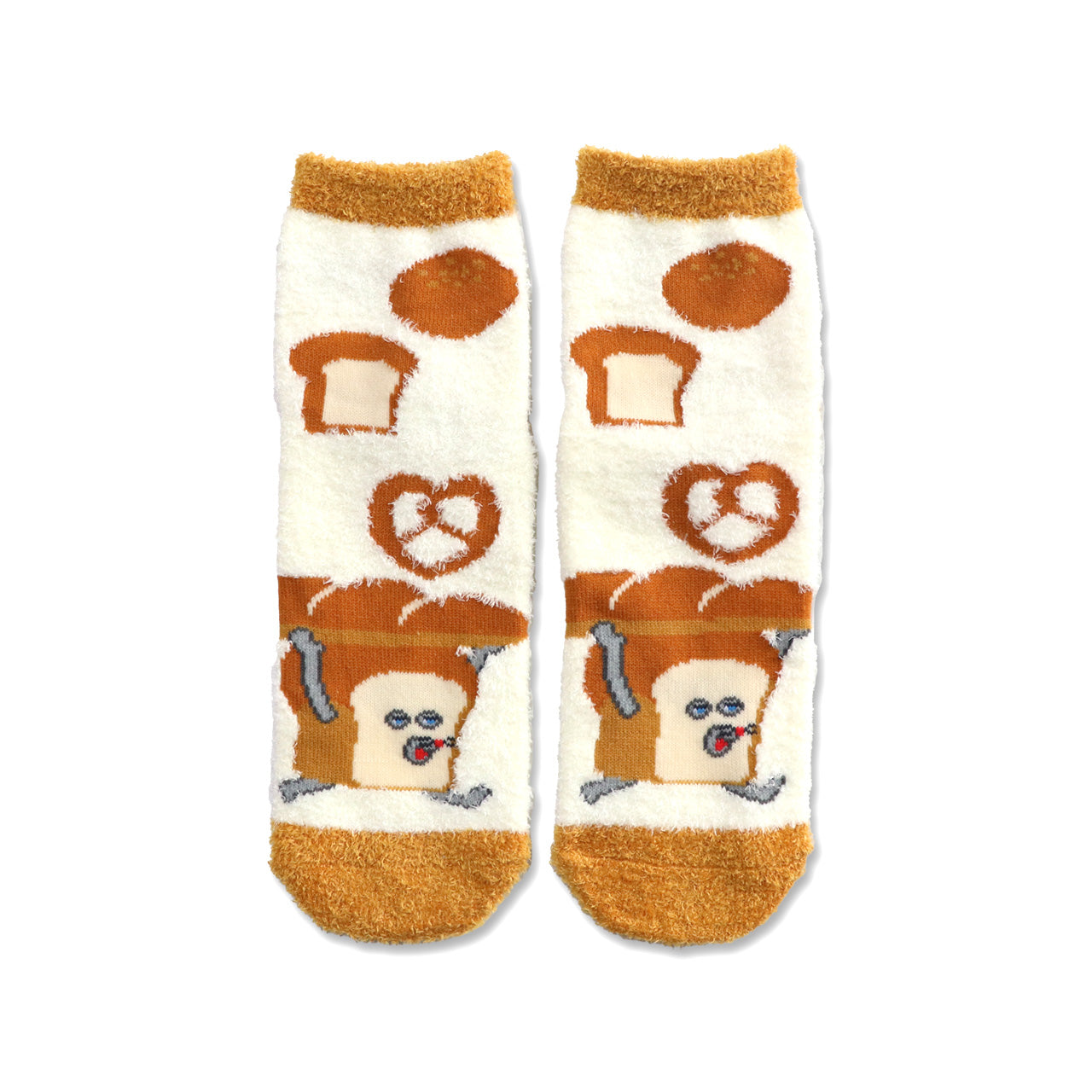 人気絵本「パンどろぼう」柄の、もこもこであったかいルームソックスです。