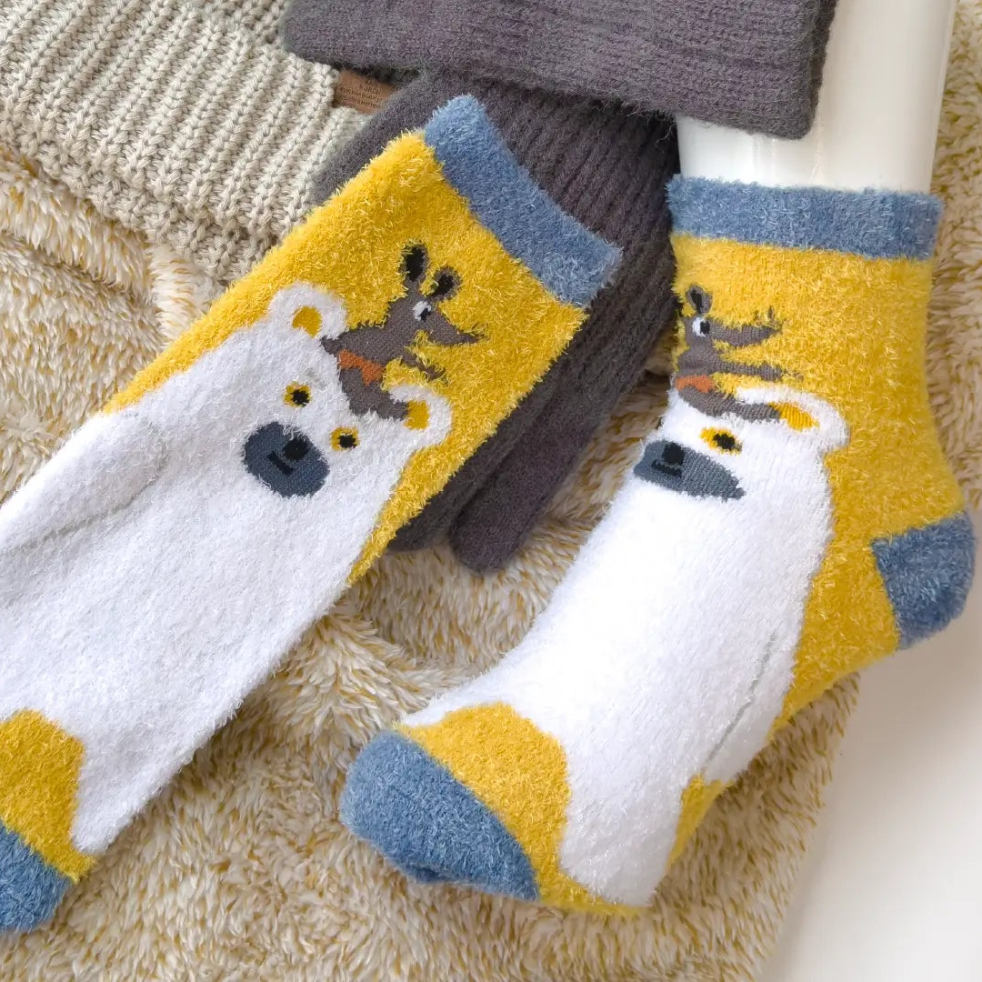人気絵本「しろくまのパンツ」柄の、もこもこであったかいルームソックスです。