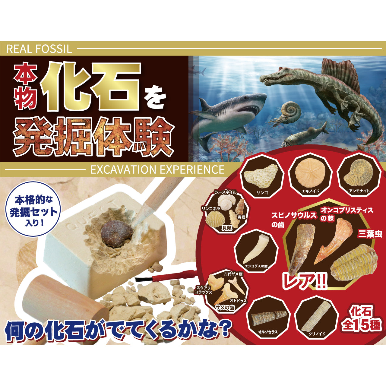 自分の手で発掘した化石をイラストと照らし合わせて、学びながらドキドキを楽しめるキットです。気分は考古学者!
