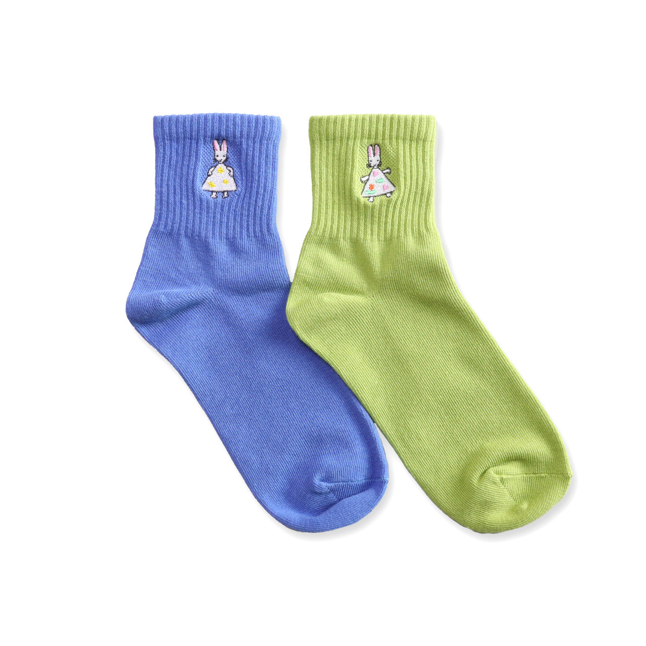 人気の絵本【わたしのワンピース】のワンポイント刺繍の可愛い靴下です。