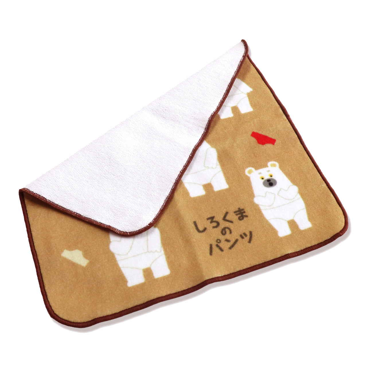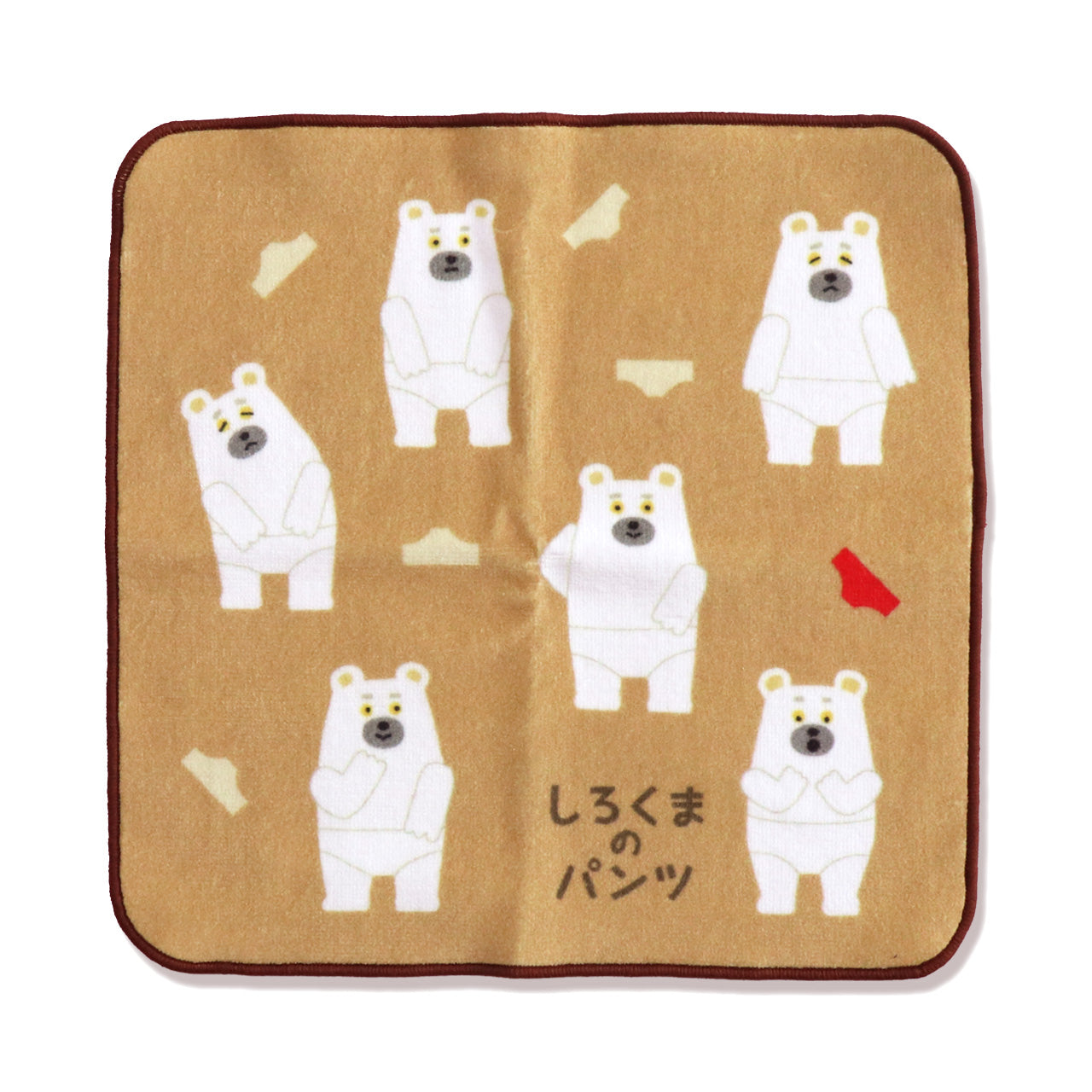 たくさんのパンツと表情豊かなしろくまさんが散りばめられたプリントタオルです。