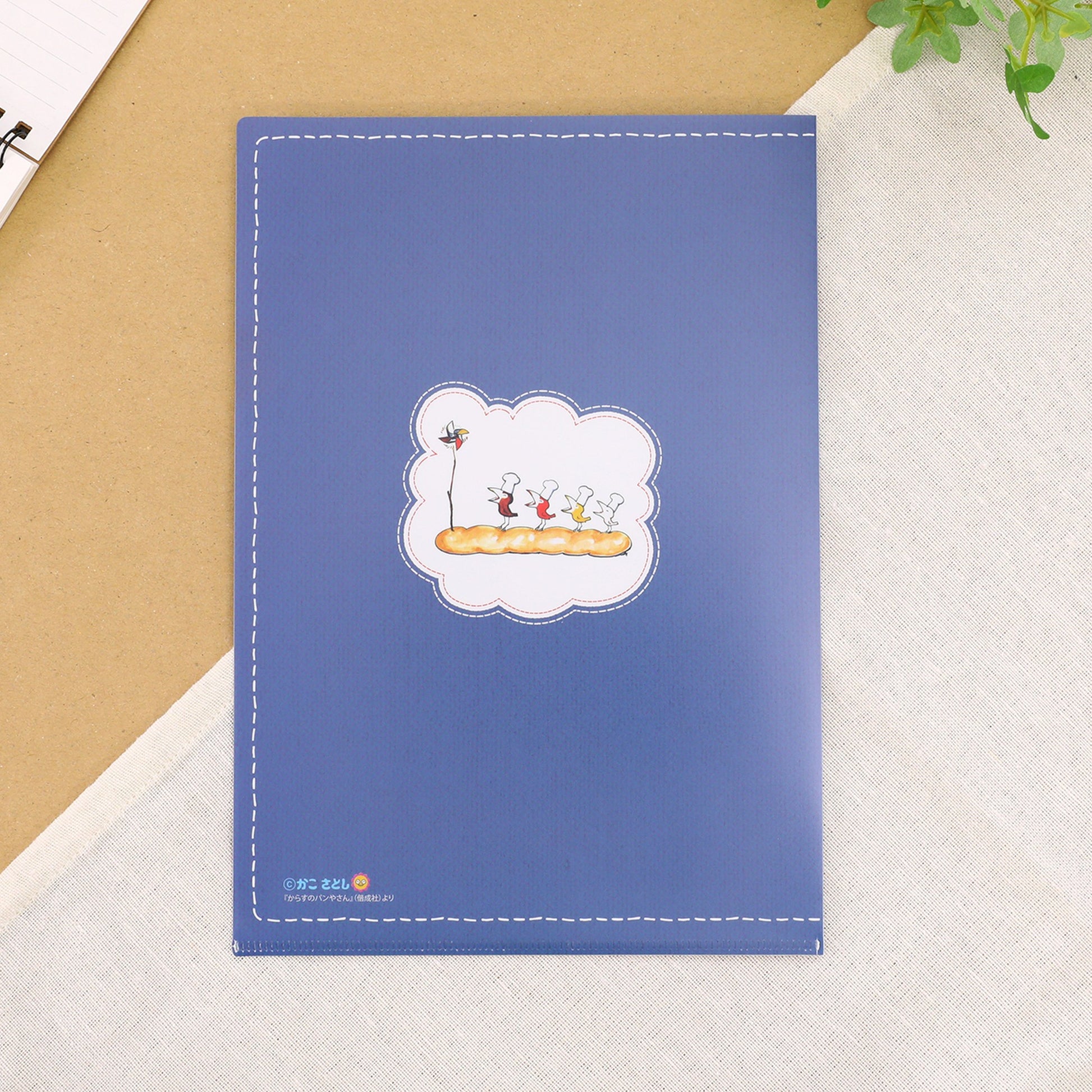 かこさとしの大人気絵本『からすのパンやさん』が、「からすのパンやさん A5クリファイル 紺」になりました。鞄にも入れて持ち歩きやすいA5サイズです。